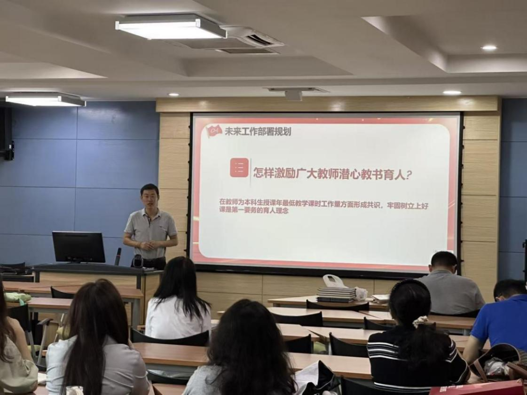 管理科学与数据科学党支部书记腾格尔副教授作《怎样激励广大教师潜心教书育人》为题的分享,结合课程建设、课堂互动与团队带教经验,交流了在AI日益普及背景下坚守育人初心、提升课堂温度的具体路径。