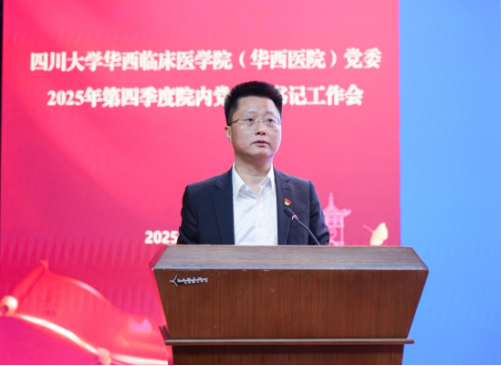 11月25日,华西临床医学院(华西医院、华西护理学院、附属成都市第二人民医院)在厚德楼多功能厅召开2025年第四季度院内党组织书记工作会暨“1+3+N”意识形态特色培训。院党委书记程永忠等院领导,内设机构党委书记、党总支(党支部)书记、党群部门主要负责人参会。院党委常务副书记刘伦旭主持会议。