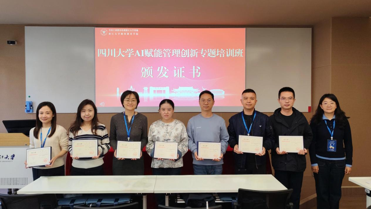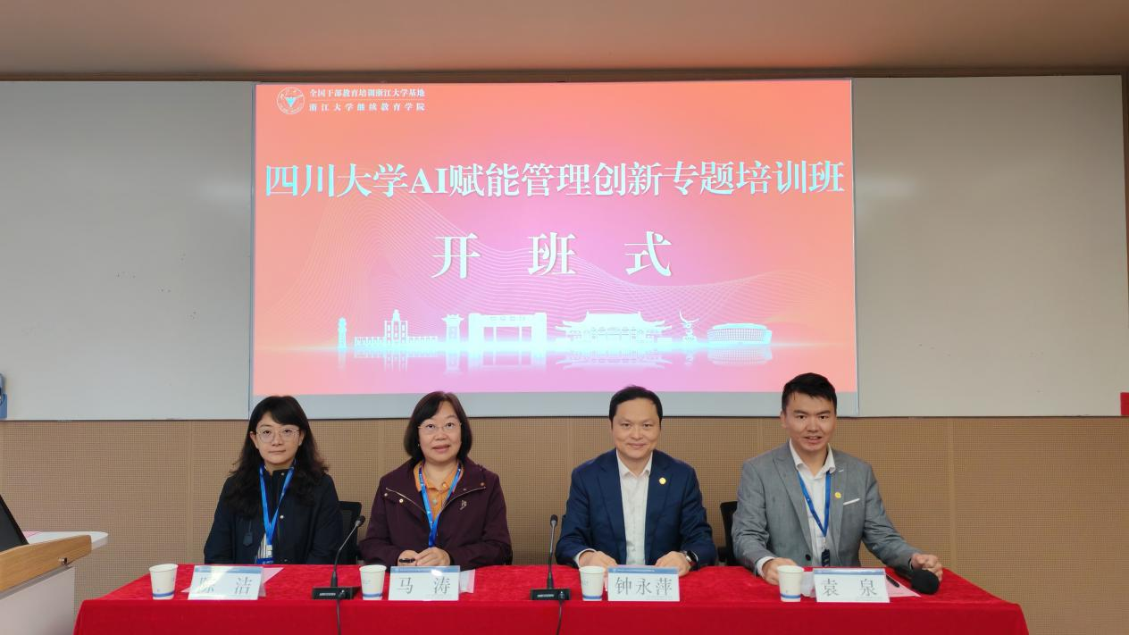 10月29日至11月2日,四川大学AI赋能管理创新专题培训在浙江大学顺利举办。四川大学党委教师工作部副部长马涛作开班动员讲话。四川大学院系、机关部处和业务单位的50名学员齐聚浙大,开启为期五天的学习。