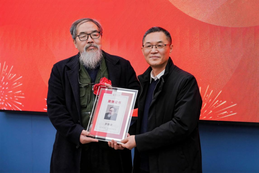赵长生为荣休教职工代表罗懋康老师颁发荣休证书。